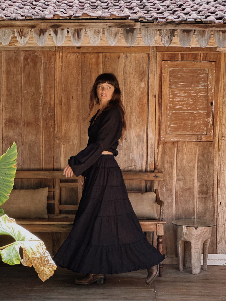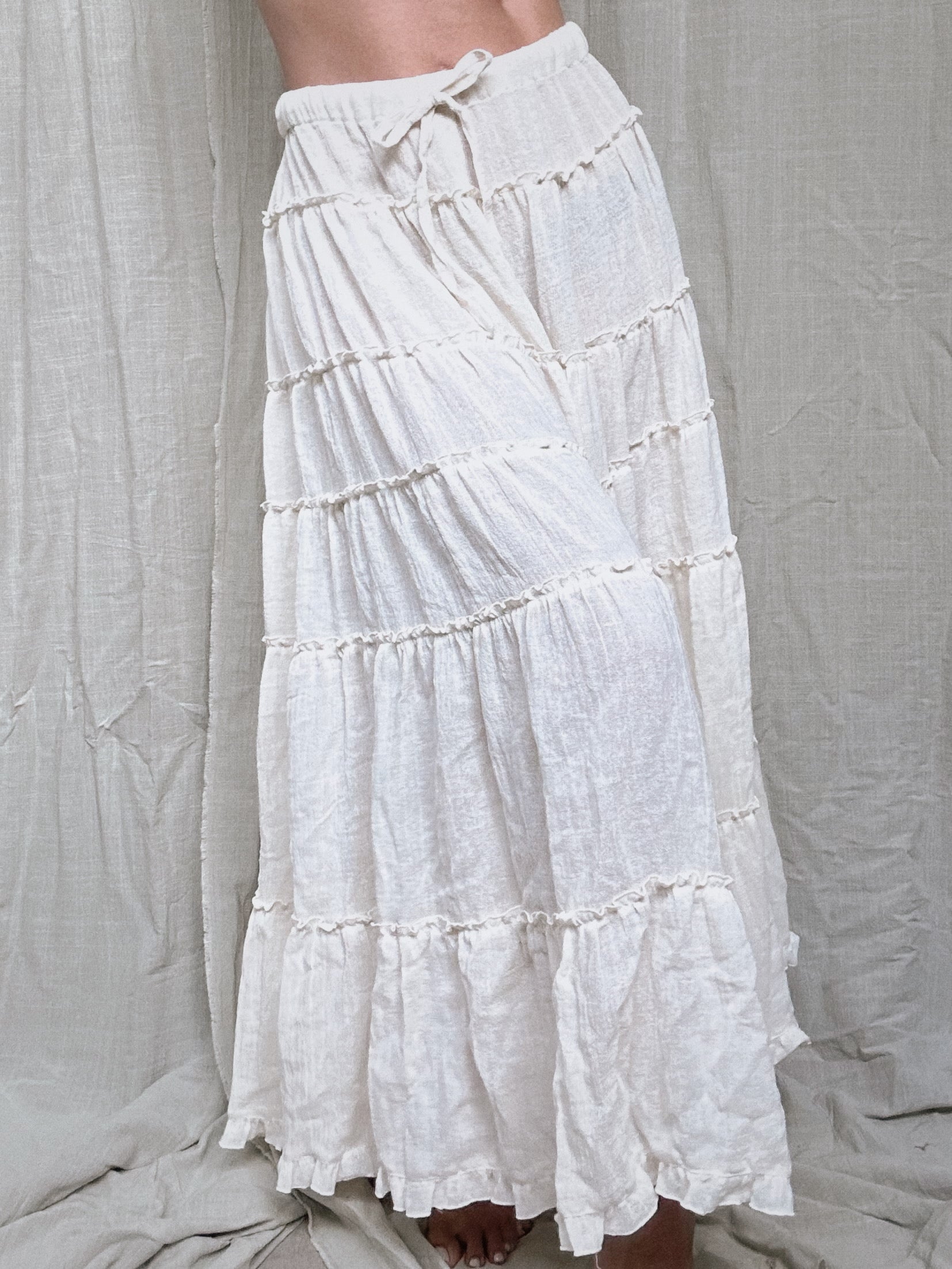 The Daisy skirt is all about effortless elegance and playful charm. Its fabric allows for a natural flow that moves gracefully with every step. As you turn or twirl, the Daisy skirt fans out gently, accentuating its fluid silhouette and adding a dreamy, whimsical touch to your look. the Daisy skirt’s movement brings a sense of vitality and freedom, making it a perfect choice for expressing a carefree, joyful style. Crafted in our light, airy cotton gauze texture fabric that gets softer over time.